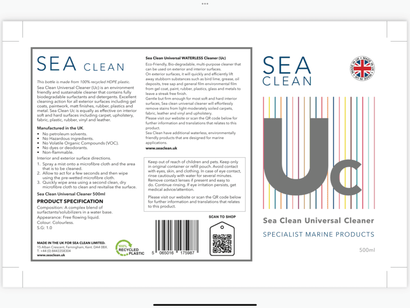 Sea Clean’s eco-friendly Universal cleaner quickly and efficiently lifts away any robust substances from your watercraft surfaces. Our unique multi-purpose cleaning technology contains no harsh chemicals or abrasive substances and is capable of removing tough dirt from both hard and soft surfaces including upholstery, fabric, plastic, rubber, vinyl, leather, sails, gel coat, metal, and matt-finished surfaces.