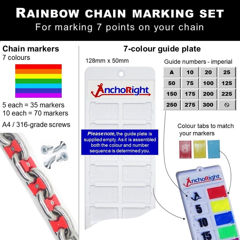 Anchoright Chain Marking Set - 8mm 5/16" chain - 7 rainbow colours (35 markers) + guide plate